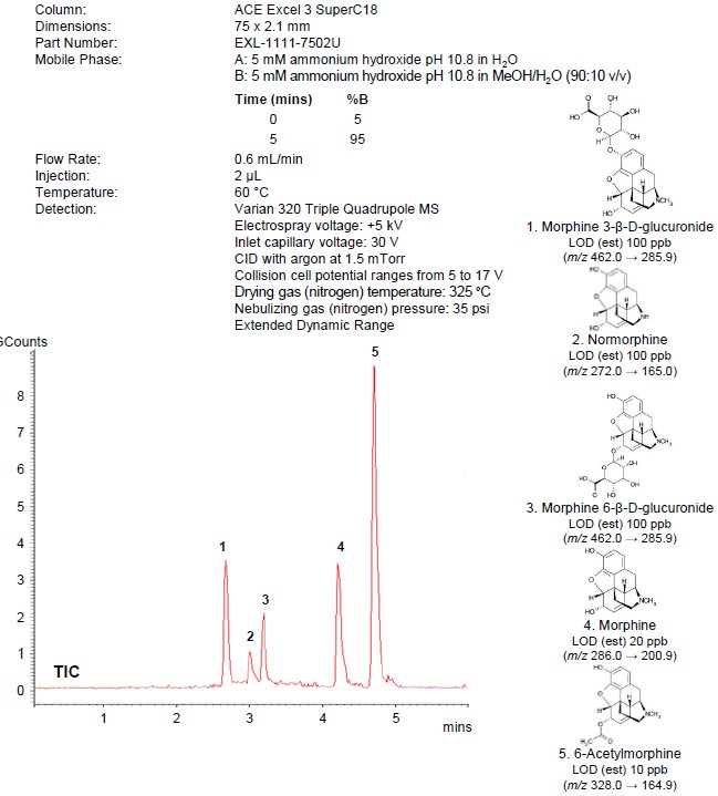 此為ACE特有的EBT技術(封裝鍵合技術),最大程度地消除殘留硅醇基的影響,特別適合維持堿性化合物的優(yōu)異色譜峰形,同時可以耐受1.5-11.5的寬pH范圍。比如:
