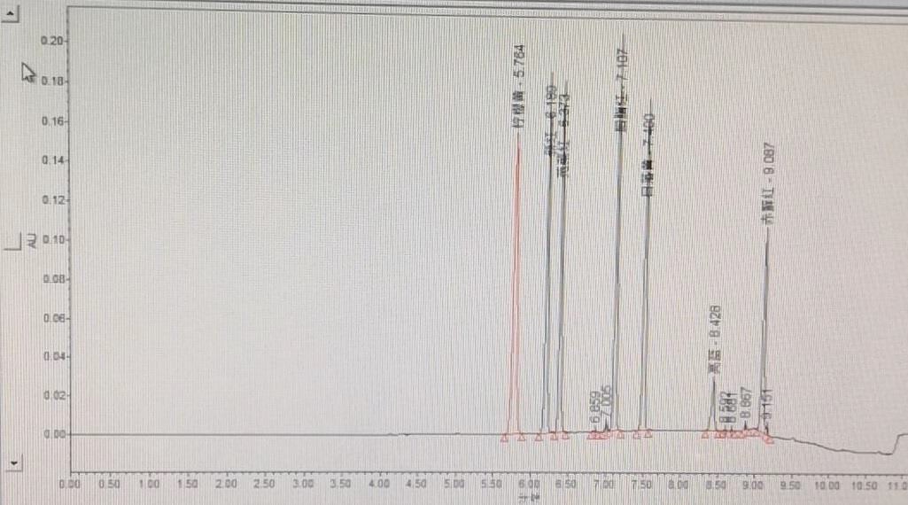 方法:GB 5009.28-2016 色譜柱:Titank C18 5μm 150×4.6mm(貨號:FMF-5560-EONU) 流動相:甲醇-乙酸銨溶液(0.02mol/L)(5:95)