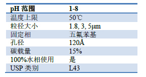 - 五氟苯基鍵合相,可提供疏水作用、π-π 作用、偶極相互作用、氫鍵作用等。因此,對芳香族化合物和含硝基、鹵素的化合物等,特別是對極性化合物和異構(gòu)體,具有強大的分離能力
