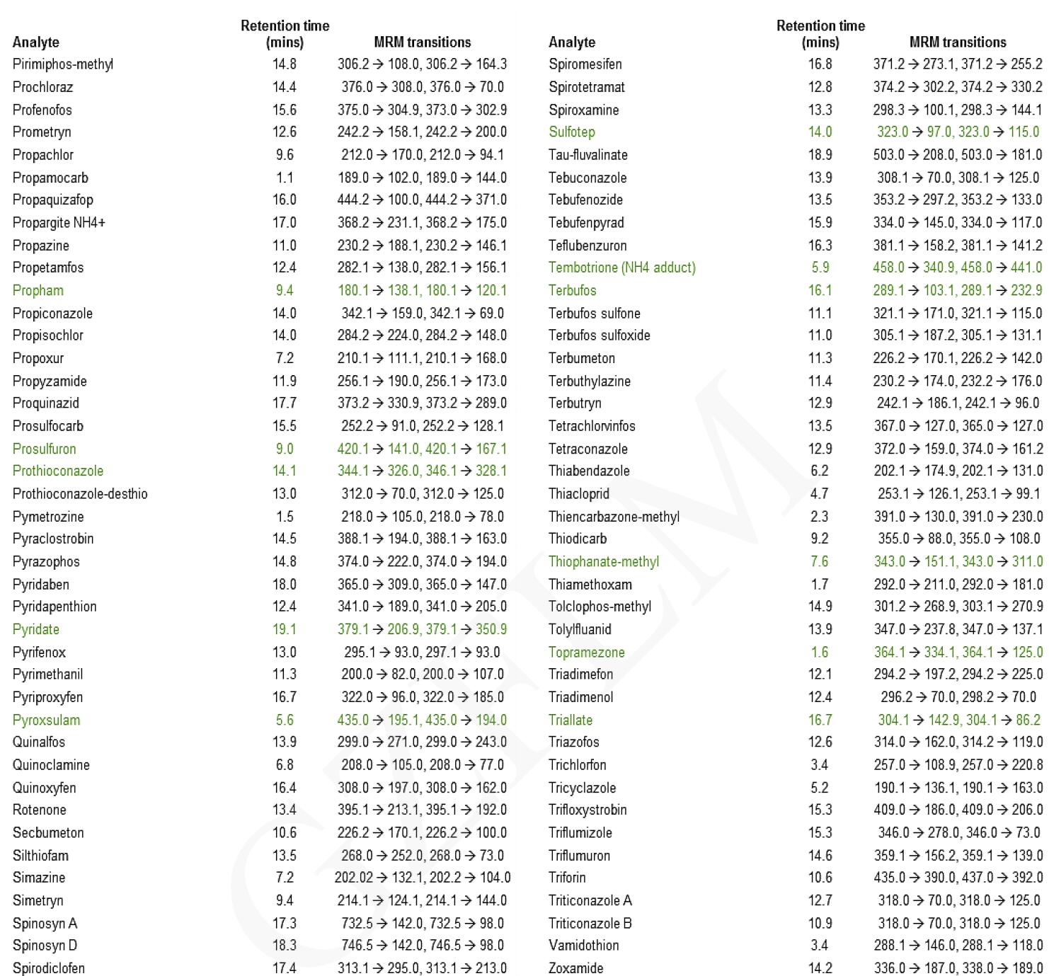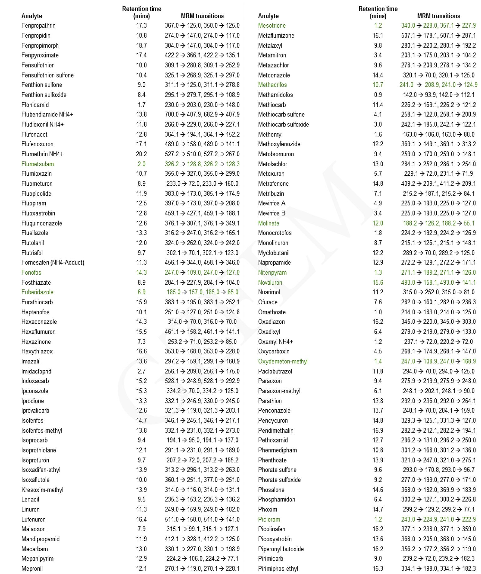 300 種農(nóng)藥的 LC-MS-MS 方法