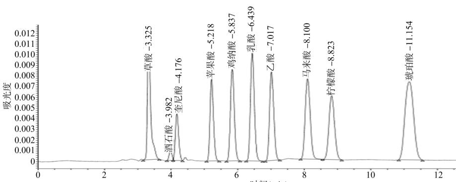 色譜柱:Mars MOA 10μm 300×7.8mm(貨號:FMH-1138-KONU) 流動相:2.5mM H2SO4 流速:0.6ml/min 進樣體積:10μL 檢測: RID 柱溫:80℃