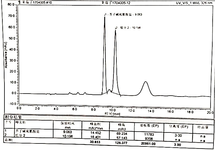 色譜柱:Titank Phenyl-Hexyl 5μm 250×4.6mm(貨號(hào):FMG-5552-EONU)