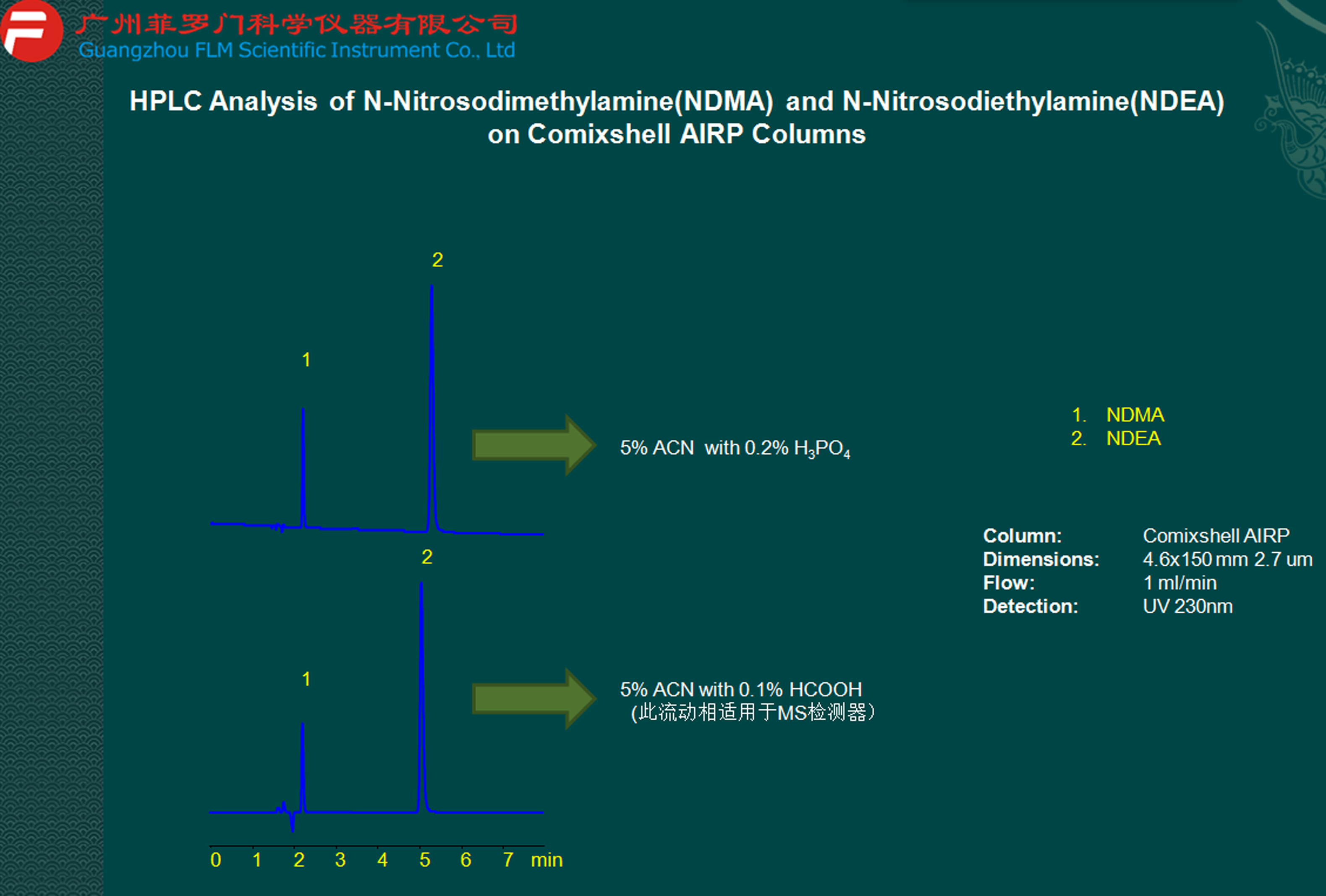 NDMA和NDEA檢測(基因毒性和元素雜質相關應用圖譜)菲羅門液相柱